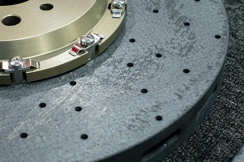 تم تصميمه بشكل جيد من أجل الصلابة والقوة وتبديد الحرارة مما يسمح لقرص الفرامل بالعمل بشكل موحد في المواقف القصوى عندما تجعلها الفرامل المصنوعة من الفولاذ والحديد الزهر غير صالحة للاستخدام.