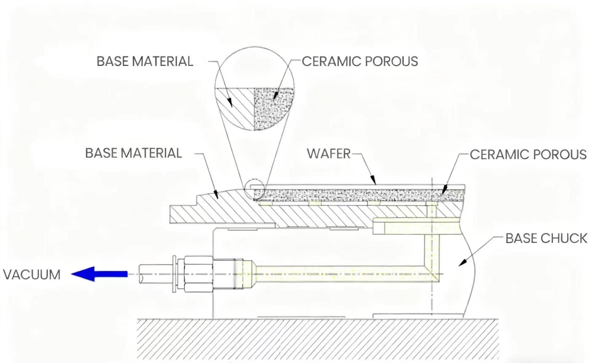 حسب الطلبتشاك السيراميك المساميةيتكون من القاعدة واللوحة الخزفية المسامية. من خلال الاتصال بنظام فراغ، يتم إنشاء بيئة الضغط المنخفض عن طريق إخلاء الهواء بين الرقاقة والسيراميك. تحت الضغط السلبي الفراغي، يتم لصق الرقاقة بقوة على سطح ظرف الظرف، مما يؤدي في النهاية إلى تحقيق تثبيت وتحديد موضع آمن ومستقر.