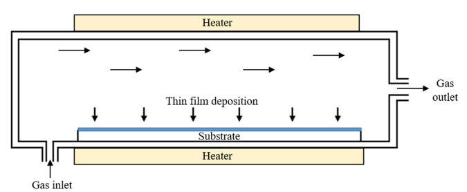 1. يتم تسليم سلائف التفاعل إلى غرفة التفاعل بواسطة غاز حامل. قبل الوصول إلى الركيزة، قد تخضع غازات التفاعل لتفاعلات طور غازي متجانسة في تدفق الغاز الرئيسي، مما يؤدي إلى توليد بعض المنتجات والمجموعات الوسيطة.