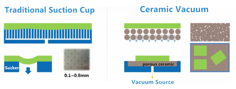 تتمتع الخراطيش المعدنية التقليدية بقوة شفط غير متساوية، وتكون عرضة للتشوه على المواد الرقيقة، وتفتقر إلى خصائص مضادة للكهرباء الساكنة، وتكون عرضة للتآكل بسبب صلابتها المنخفضة. من ناحية أخرى، فإن ظرف التفريغ السيراميكي مناسب للأجزاء الرقيقة، ويوفر خصائص مضادة للكهرباء الساكنة، كما أنه مقاوم للتآكل والتآكل.