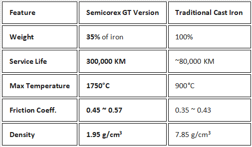 تخفيض الكتلة: يزن إصدار GT 35% فقط من قرص الحديد الزهر القياسي.